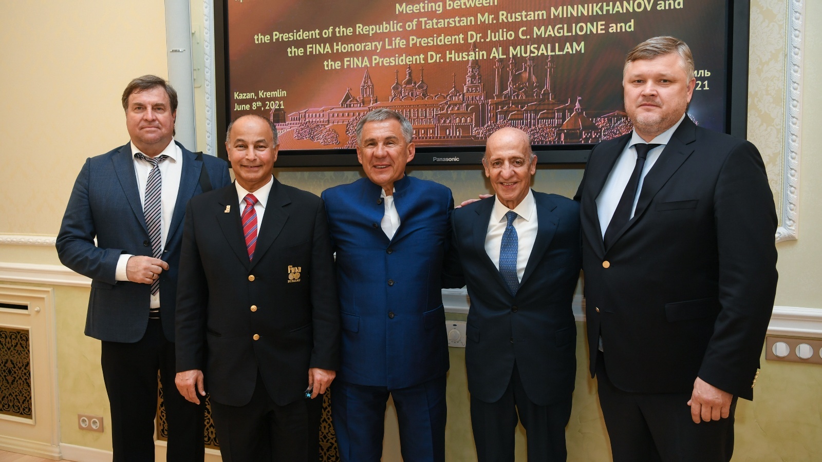 Международная федерация плавания (ФИНА) является стратегическим партнером Татарстана. Об этом заявил сегодня Президент Республики Татарстан Рустам Минниханов на встрече с новым президентом ФИНА Хусейном Аль-Мусалламом и почетным пожизненным президентом организации Хулио Маглионе. Встреча прошла в Казанском Кремле.